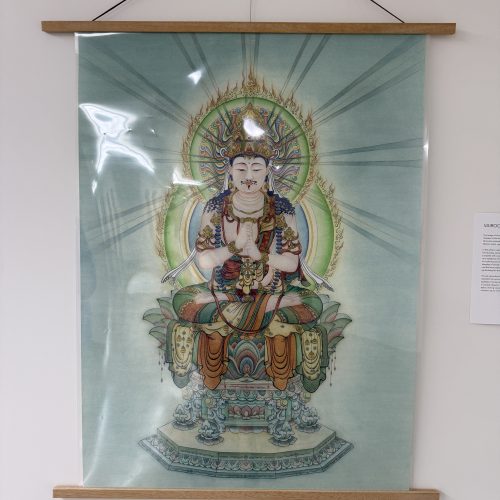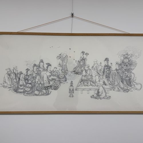 Bodhi in Ink features 126 paintings by Beijing artist Man Qianhe. Inspired by the Lotus Sūtra, Vimalakīrti Sūtra, and Avataṃsaka Sūtra, the paintings combine the rich visual heritage of Dunhuang murals with contemporary artistic expression. These works reflect over a decade of exploration in ink painting, where tradition and creativity meet in a meditative practice of art.
