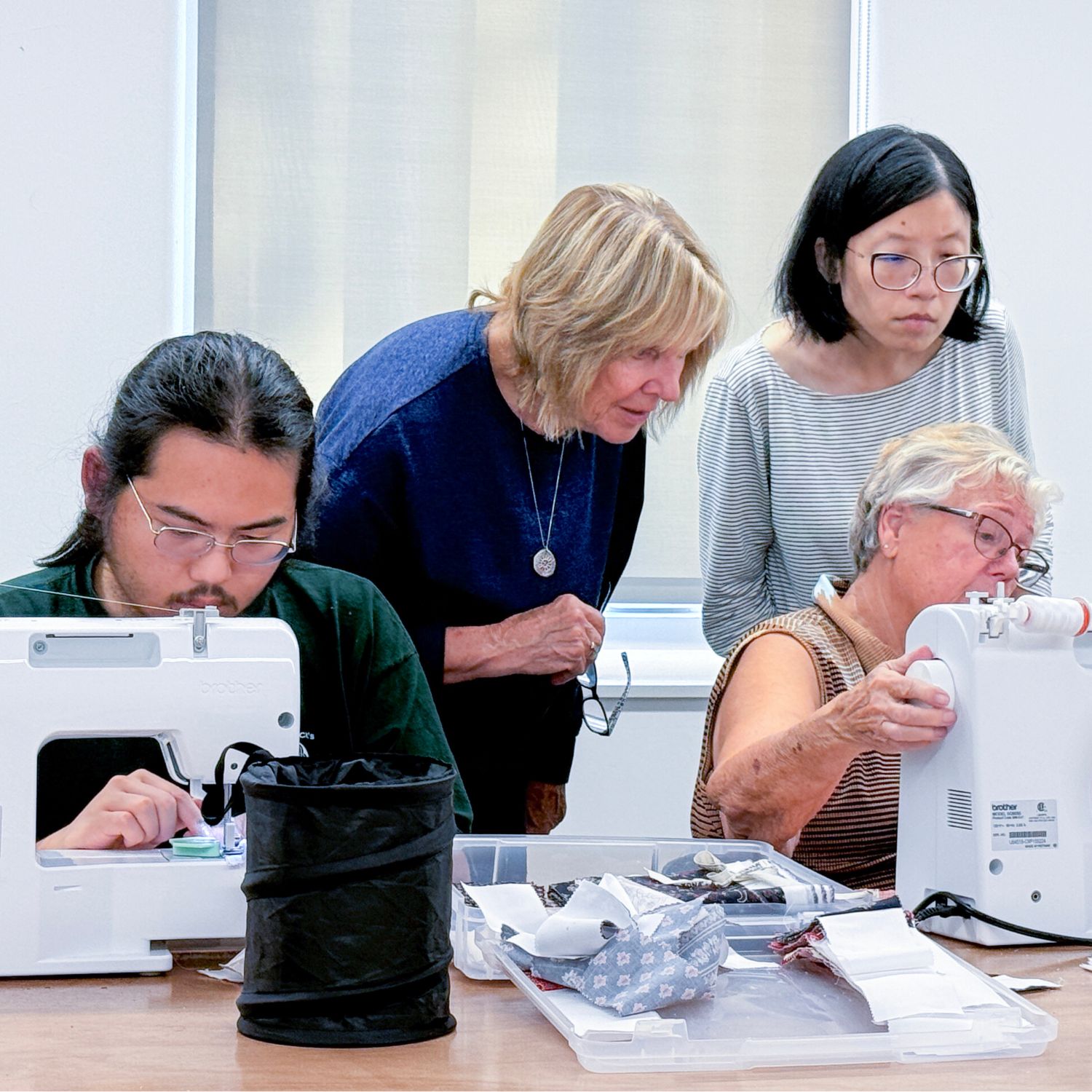 In this beginning quilting class, students learn about all the quilting tools and how to use a sewing machine to create their own quilt. They are introduced to color, design, fabric cutting, and sewing quilt pieces together according to a pattern. Once the top is finished, they learn how to sandwich the top with batting and backing. Finally, they learn how to free motion and bind their quilt.