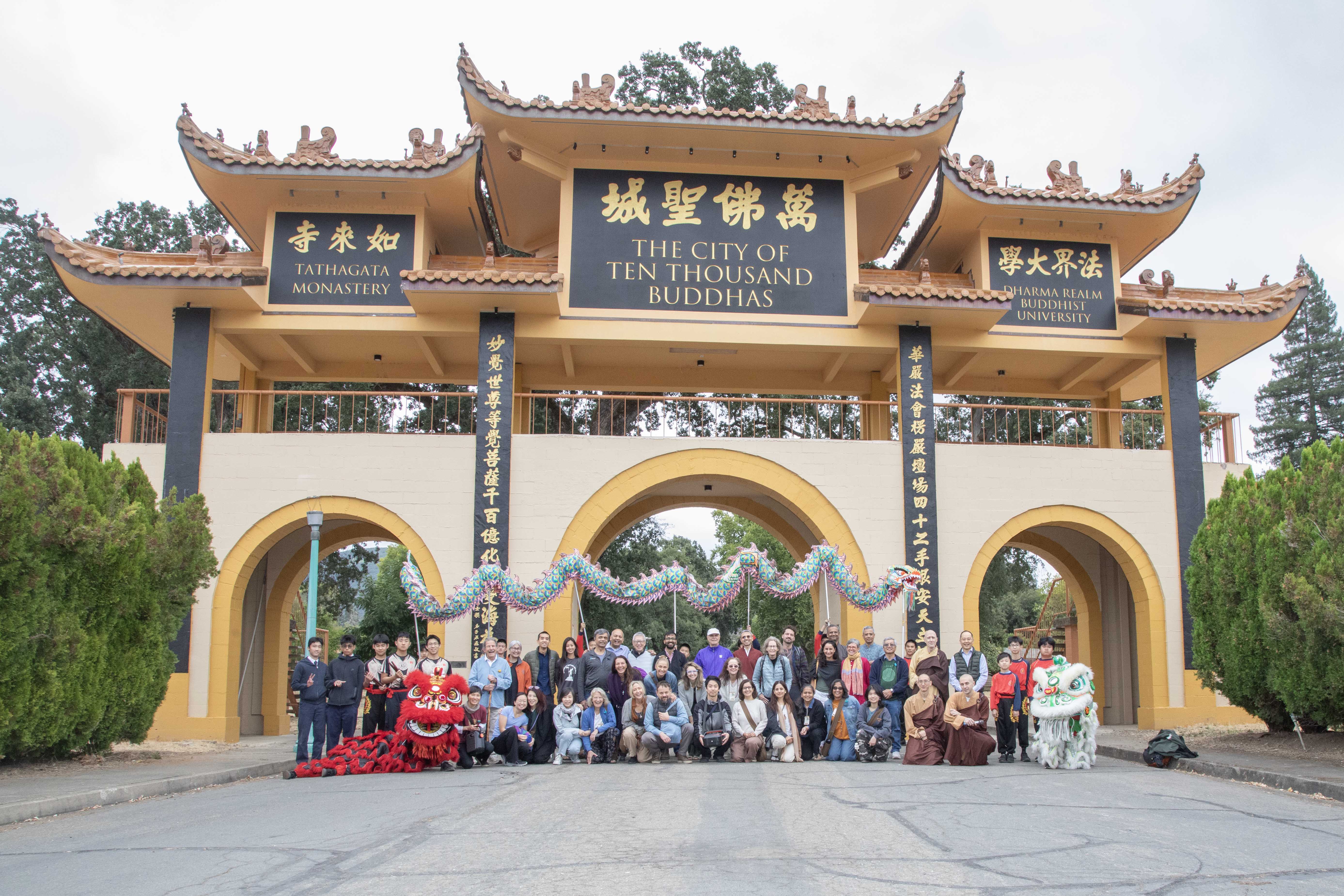 On September 8, 2025, City of Ten Thousand Buddhas and Dharma Realm Buddhist University welcomed 45 honored guests from ServiceSpace, an incubator of labor-of-love projects, for an Immersion Day of connection and learning. The program included a lion and dragon dance, guided visits, chanting, shared inquiry, and panels with students, monastics, and faculty. The day concluded with stories and music at Sudhana Center, leaving many inspired by the collective spirit of compassion and service. Among the participants were educators, tech entrepreneurs, medical professionals, and ServiceSpace volunteers from India, reflecting both the breadth and depth of this gathering and bringing Master Hua’s vision for Dharma and education vividly to life.